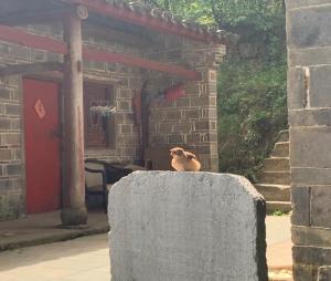We saw a small bird sitting on the stone slab in the inner courtyard of the Five Immortals Temple. His mouth was fully open and he did not move anything except the head, the bird was looking at us, like if he was asking for help. It seemed scared and unable to fly. He was screaming. Had another animal tried to catch it? Was he thirsty? or asking for a manto (Chinese steamed bun) or had he lost his parents?