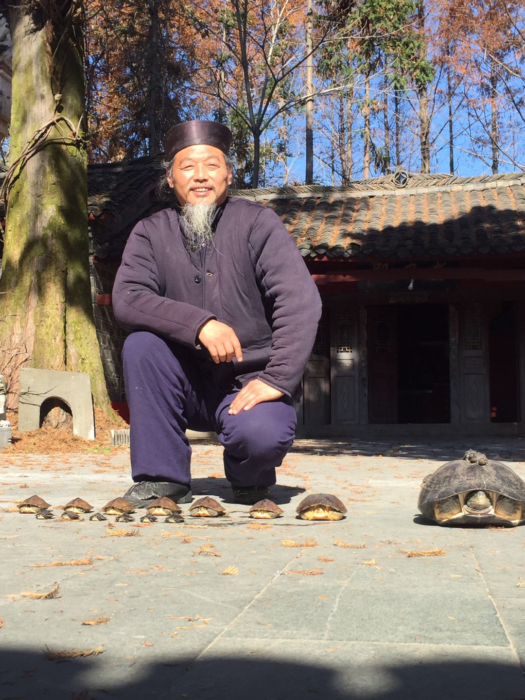 One day at the temple, there were a few new arrivals. Nineteen turtles of varying sizes were given to Li Shifu by one of his friends. The turtles had been washed and given good food to prepare them for winter hibernation. Now they ‘live’ in the main temple where they rest and sleep until spring comes.