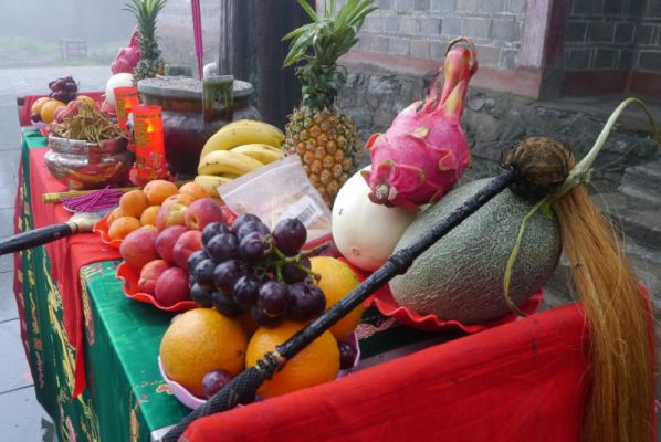 It is a requirement for the scriptures to be performed on a ritual altar, in a Daoist Field, inside a temple. Temples are not erected messily, as they are on points on the energetic web. If a temple is not on a great energetic point then maybe it is on a small one. Feng Shui is precisely a very ancient method to find those power points. It is a vast subject. Two years ago Feng Shui was taught here, on White Horse Mountain, but only one third of the topic could be covered. Partaking in the scripture, lighting incense and accompanying the scripture is a very rare opportunity and it is only possible in a few places. Our knowledge and its powers are attached to the Spirit statues. It is a type of material form to be shown to kindergarten children. If you are in middle school, there is no need for the form. If it is on a higher plane, how come there are still images? There are none. The statues are made from mud, wood and iron. Having statues is a method to help to recognize this type of other-dimensional powers. We do not worship role models, because energy fields and the Dao are unified. Like the first sentence in the Dao De Jing;