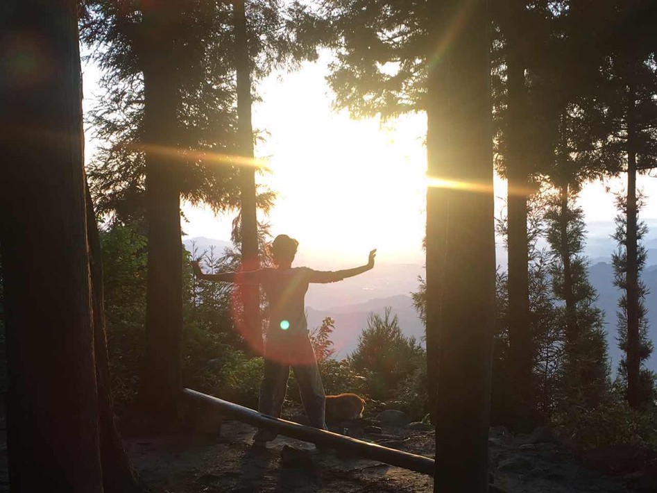 On the second day of abstaining from grain, I stood there early morning – feeble, shaky, alone. The mist of the mountain clouds was covering the temple grounds, and inside me – the flicker of light dim and fading. Suddenly, a wave of unknown energy washed over me. As I looked up and felt the wind on my face – the trees started to move gently, whilst staying perfectly still. Everything- the sky, the earth, the trees, the clouds, me – became one. I could feel what they feel, what they must have felt all these timeless years. All the hardships, the bitterness, the loneliness, the strength persevered by these trees. What are my own daily worries if not dust? Nature knows stillness, and in the middle of it there is movement. As the sun peaked through the clouds, suddenly I heard music softly rolling into our QiGong courtyard. It was full of light, and calmness, and indescribable hope – for this unity, for each of us, for the Universe. It’s as if, at this very moment, Shifu knew. He does.
