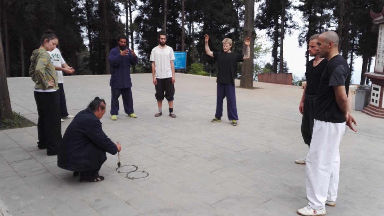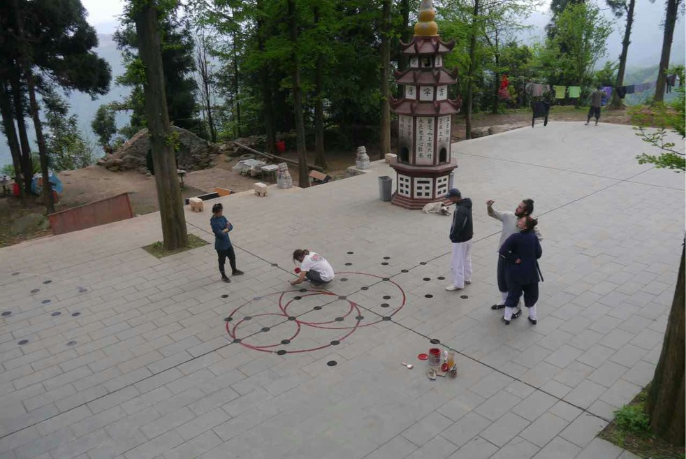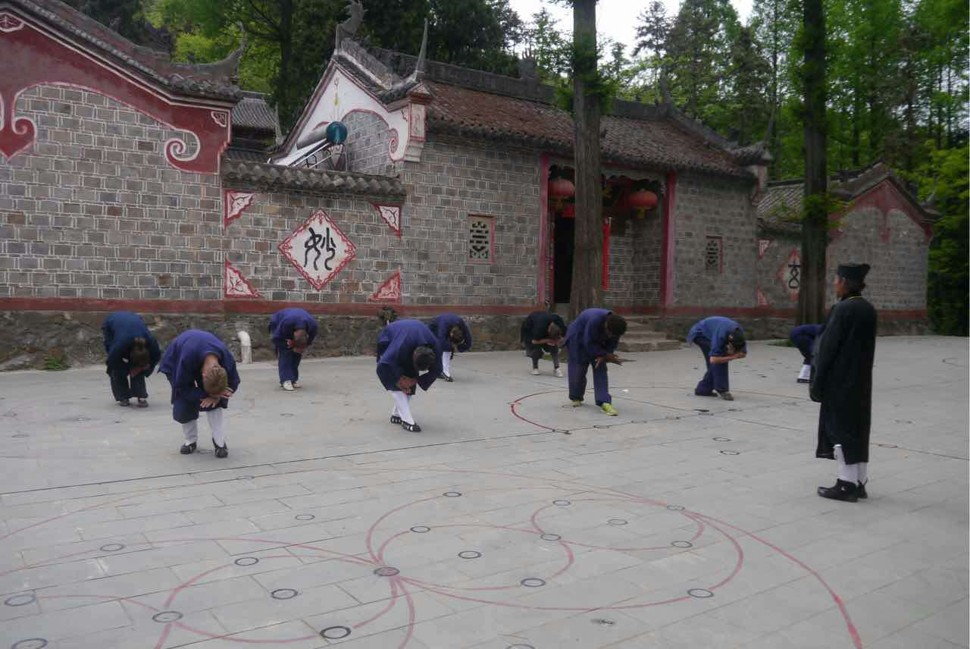retaining its own unmistakably individual characteristics. Upon first glance, it may seem to resemble Ba Gua due to the emphasis on circle walking, although there are a few key differences, the most obvious of which is that in this form the practitioner faces out of the circle, not towards the center. One reason for this is that it more effectively trains the stepping of the practitioner to deal with multiple opponents, rather than just circling around one single opponent. On a more advanced level, this form also involves ceremonial Daoist elements rarely found in other martial arts forms in the modern era. We were told this martial arts form can act as a channel for communication with higher realms and higher dimensions of existence. Later training involves integration of more advanced elements of Daoist study such as Jue (hand symbols), Zhou (incantations) and Fa (ceremonial methods) with the form. Opportunities to commence the study of such an intricate martial arts form with so many interwoven elements is undoubtedly a scarcity these days, and the group was thankful for being involved at this time.