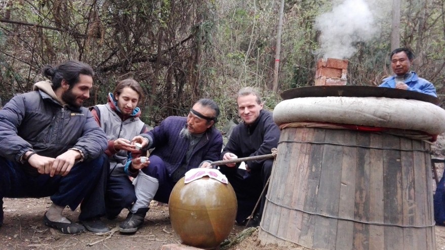 We also start to plant medicinal herbs and vegetables together with the master, and we brewed medicinal alcohol according to an ancient natural method.