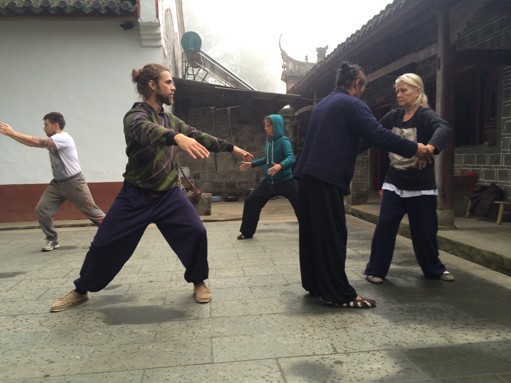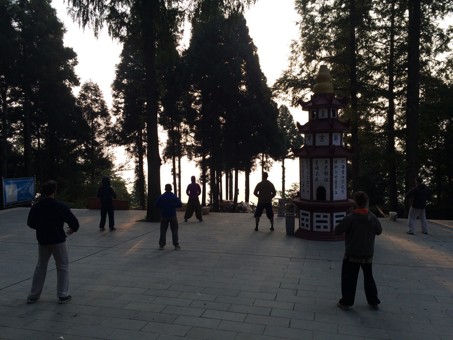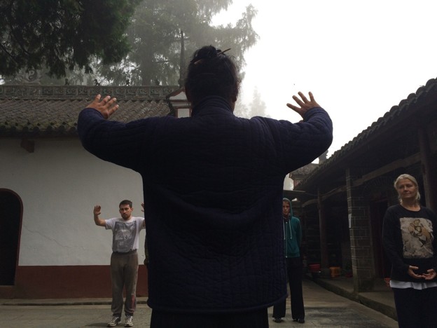 We still wake up and assemble at 6am in the morning, run up to the top of the mountain, then practice all together Qi Gong, sun-gazing and standing meditation, right on time to catch the sunrise. This week we learn a new very beautiful Crane Qi Gong movement, that came to complete our early morning set of practices.