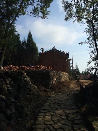 During this time, the building of the new temple Tan Shan Miao, nearby the Black Dragon Spring, halfway down the mountain, is going on really fast. The land has been flattened, and new buildings are already being erected at the corner of the path. It is always a surprise, whenever we go down, to discover the progresses in the construction work, and see the new temple take shape.