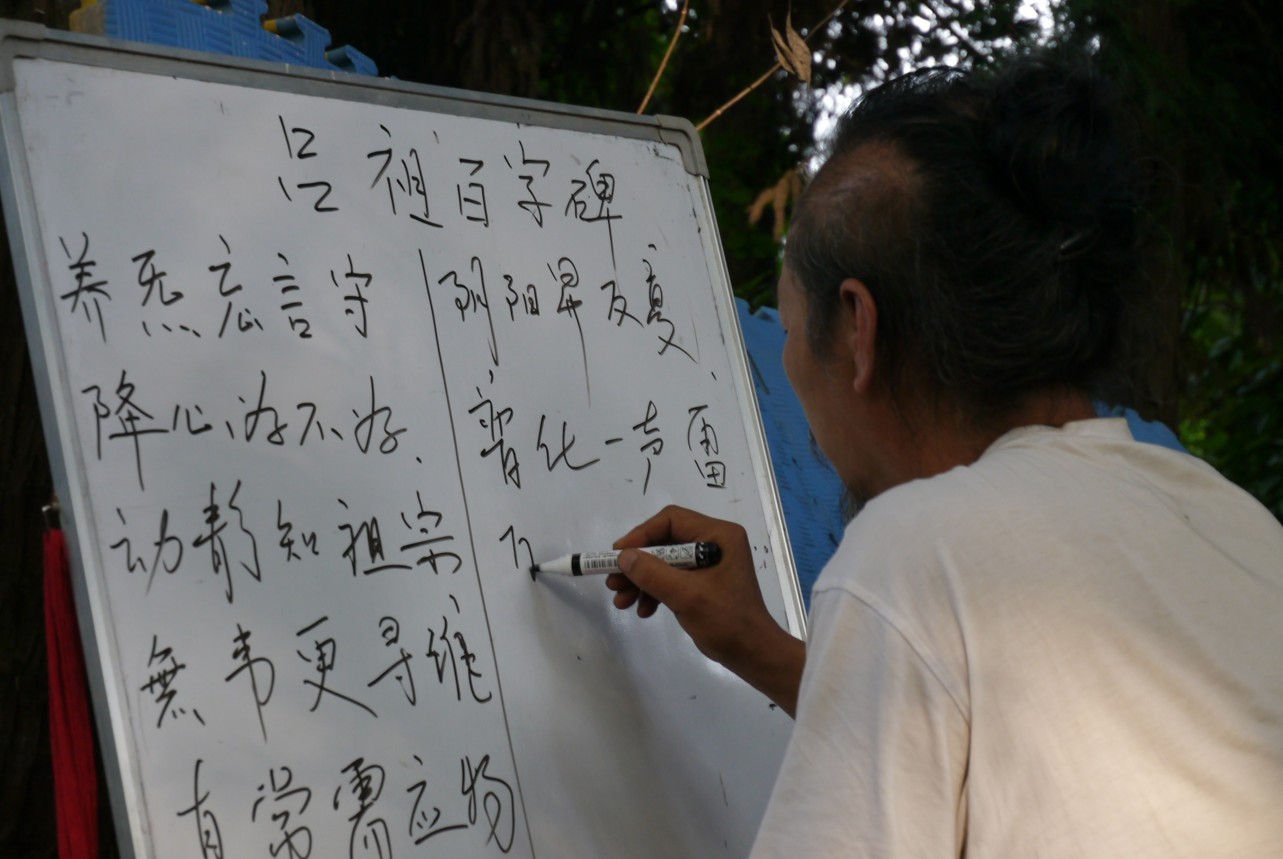We studied everyday a lot, having a long theory class in the morning and an other long theory class in the afternoon. The main emphasis throughout the course was on the fundamental aspect of laying the foundation of Retrieving the Heart and Refining the Self (Shou Xin Lian Ji).