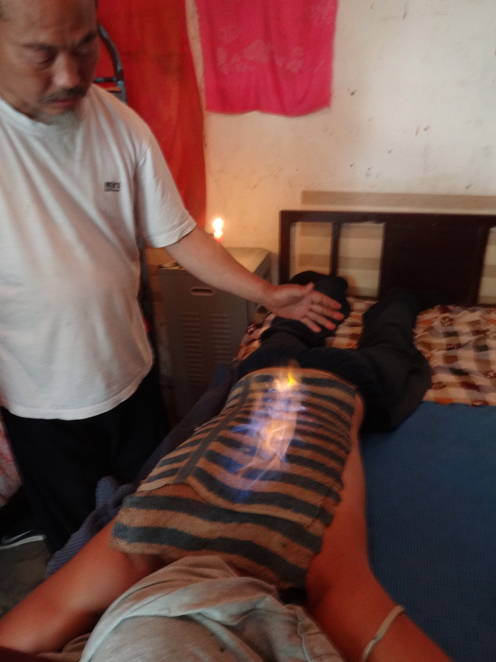 At Five Immortals Temple, there is no official medical clinic and as such only a limited amount of actual medical treatments occurs. The majority of these treatments take the form of herbal decoctions primarily using herbs growing on the mountain. Other treatments include massage, acupuncture, fire therapy, cupping and bleeding. By and large, those staying at the temple are encouraged to take responsibility for their own health situation through the practice of Qigong, Taiji and other Longevity exercises, and most importantly through changing their own thoughts and behaviours. It was repeated and stressed that being cured of disease did not give one license to return to previous habits, as these were what caused the disease in the first place. One was cured of disease for a purpose, in order to create a new self and a new life. If one returned to their former lifestyle habits and ways of thought, the disease would return. It was also emphasised that Five Immortals Temple is not a hospital, but a place where people can come and 調理身體 (regulate their bodies). The Five Immortals website documents the experiences of many who have healed various chronic ailments during their stay there, including Lyme’s disease, amenorrhea, diabetes, etc. It should be emphasised that Daoist Medicine is inseparable from the Daoist religion; in fact, Dao and medicine could not be seen to be separate; one needs to first practice the Dao, and the practice of medicine would naturally follow. As such, healing in itself isn’t the ultimate concern of the Daoist doctor; the healing process itself should ideally serve as a catalyst for a kind of sacred metamorphosis in which, with a new healthy body, a new personality emerges along with it, together with blossoming and enlightened forms of perception and behaviour. Medicine also serves as a means for Daoists to relieve the suffering of others while spiritually elevating themselves, one of many paths that can lead to a higher understanding of the Dao.